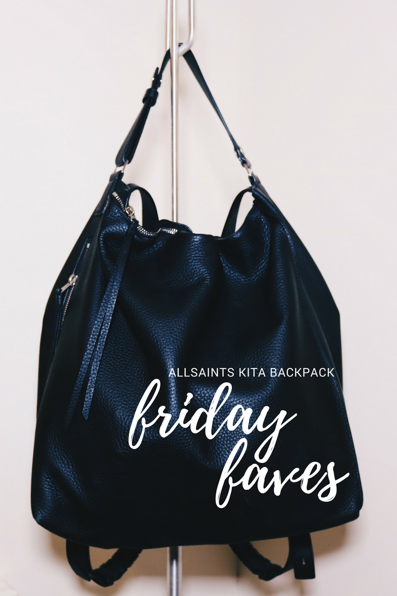 Milan Fashion Week is officially in full swing, so you know what that means! I’m headed to Milano baby! Ahhh the land of heavenly gelato, fresh pasta, and impeccably dressed older men. Yummm, sign me up. It sounds like a dream right? Well, in many ways it is, but I won’t be front row at any shows (other than Marni of course), and sipping on cocktails while I schmooze with fashionistas and socialites. I will be working my little (not so little?) ass off in the showroom, selling selling selling my life away! See, now the sparkle and shine is fading away huh? But first, I have to fly there! I know I’ve already given you my award-worthy packing tips, so i’ll spare you the deets and avoid repetition. This time, I’m here to tell you that I have found the BEST carry-on travel bag to ever exist. I fell in love, and you will too! In this week’s edition of Friday Faves, I present to you...drum roll please… the AllSaints Kita Backpack.